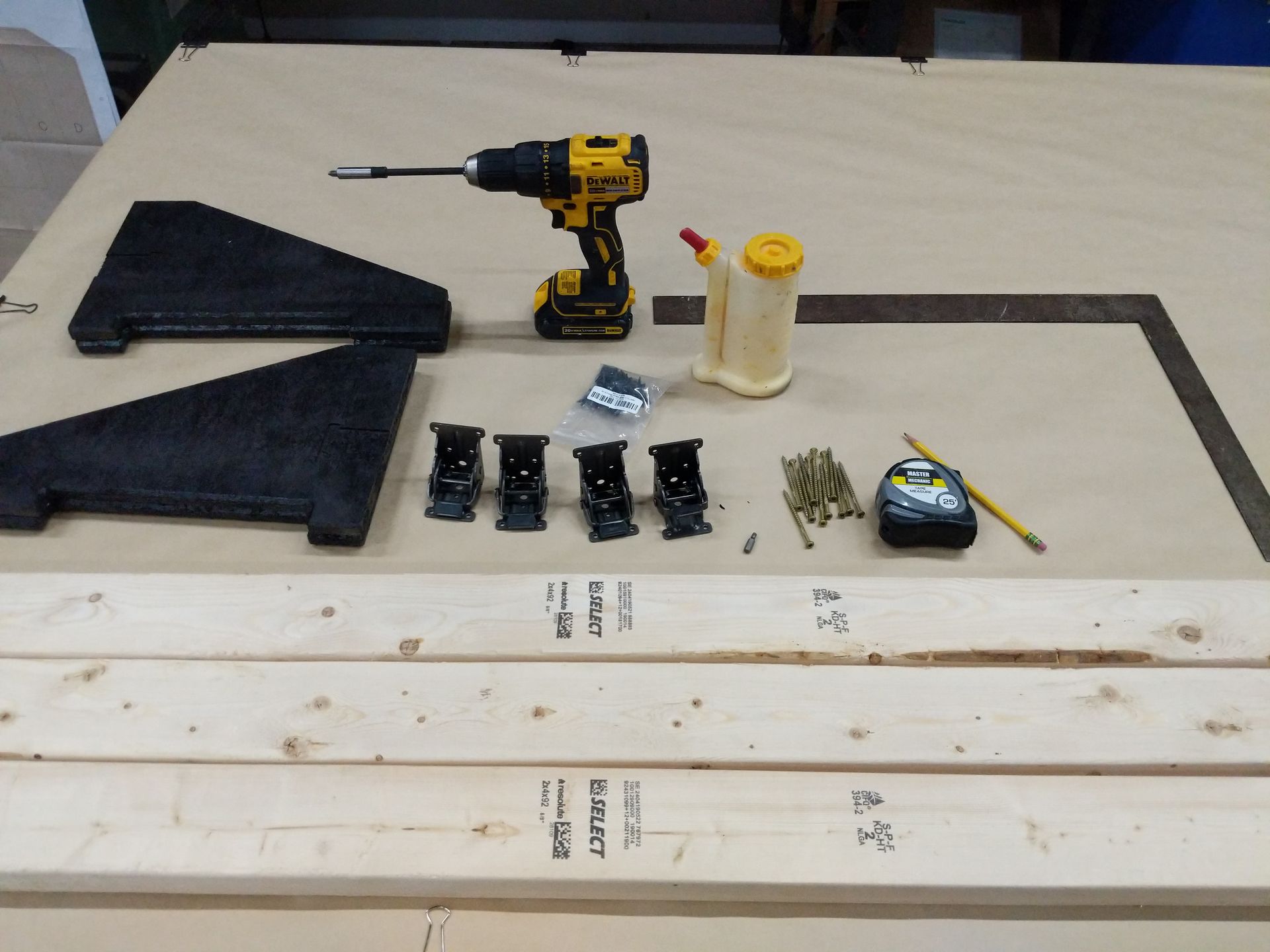 - Important! The feet are designed to touch the 2x4 as shown. This way, it will brace firmly against the 2x4 and keep your frame stable.