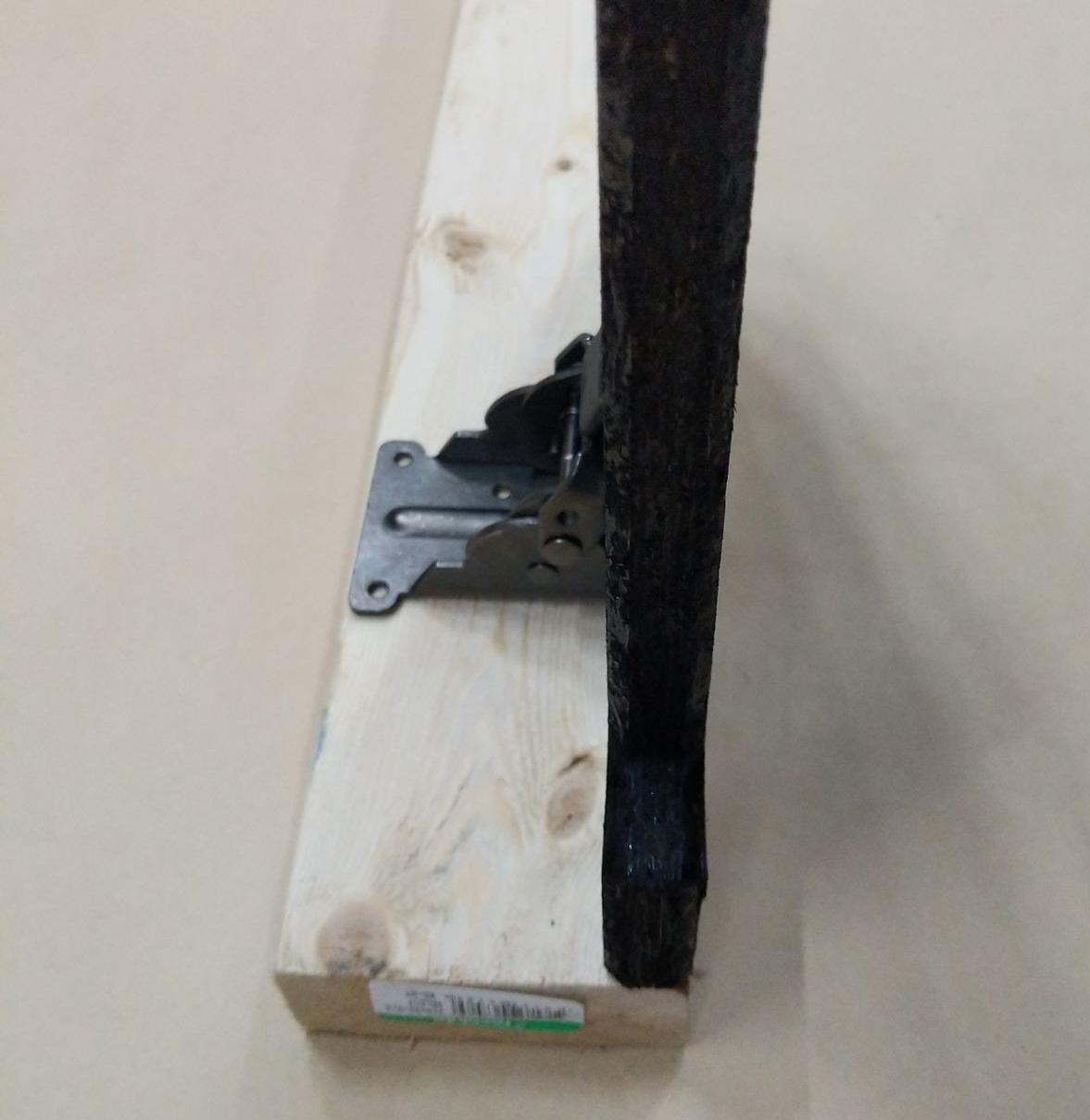 Screw the other side of hinge to the 2x4 leg.